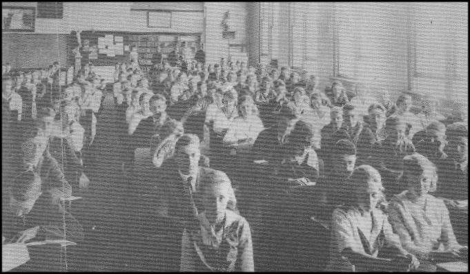 Whenever an announcement had to be made (the days before intercom) to the entire student body, the teachers would tell their classes to meet in the Main Room or assembly at a set time. So, often that room was referred to as the assembly room as it was usually large enough to have seating room and desks for the entire four classes.