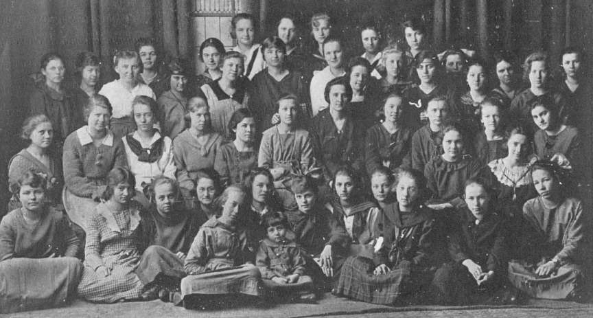 Glee Club: President-Vivian Bartlett; Secretary-Marseliette Kutchera; Treasurer-Leona Kurth; Director-Miss Youngs; Pianist-Eva Schultz. Roster-Leola Burge, Ruth Bublitz, Florence Bohnsack, Velma Burley, Marian Burge, Marie Crothers, Irene Crockett, Helen Frantz, Geraldine Farning, Martha Flitiz, Leona Farning, Emily Frei, Helen Free, Lillian Gangler, Nellie Haas, Myrtle Hanson, Doris Huckstead, Pearl Harding, Veronica Kosmoski, Ruth Kurtzweg, Dorothy Kurth, Rose Marx, Mayme McCune, Bethel Newell, Cecelia O'Riley, Josephine Palmer, Dorothea Pickering, Margaret Rath, Marie Resong, Viola Seif, Lucille Snyder, Helen Seman, Gladys Selves, Ethelyn Shew, Margaret Schiller, Katherine Schoen, Katherine Sonheim, Estella Sleves, Ethel Thoma, Kezia Turville, Helen Weaver, Frieda Wagner.