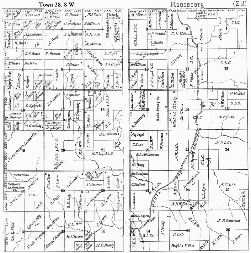 Log, Co.; E.L. Williams; Ramsay Land Co.; F. Hemp; Bright