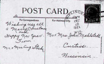 To: Wishing use all a Merry Christmas and Happy New Year. From Mr. and Mrs. Aug Stecker. |