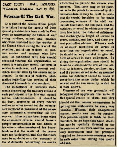 1885 Mar 11-Wis. State Senate Authorizes a special Veteran's Census