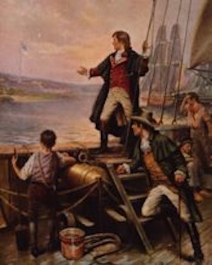 Francis Scott Key observing the flag the morning after the battle. by Edward Percy Moran, 1913