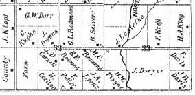 1893 Plat Map Excerpt Note: At this time; Potter, Redmond, Lyons, Visgar and Dwyer are adjacent landowners to the church. |